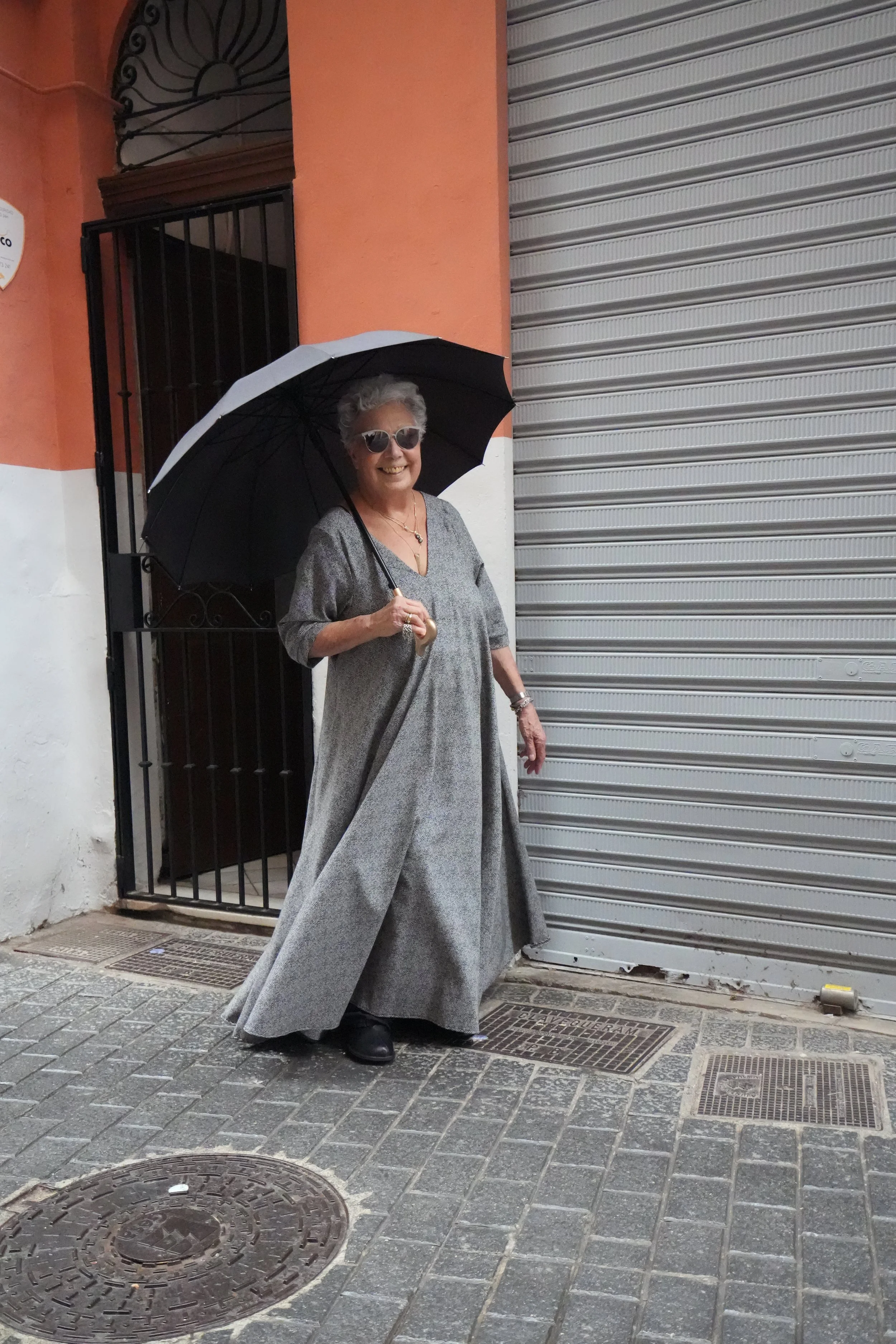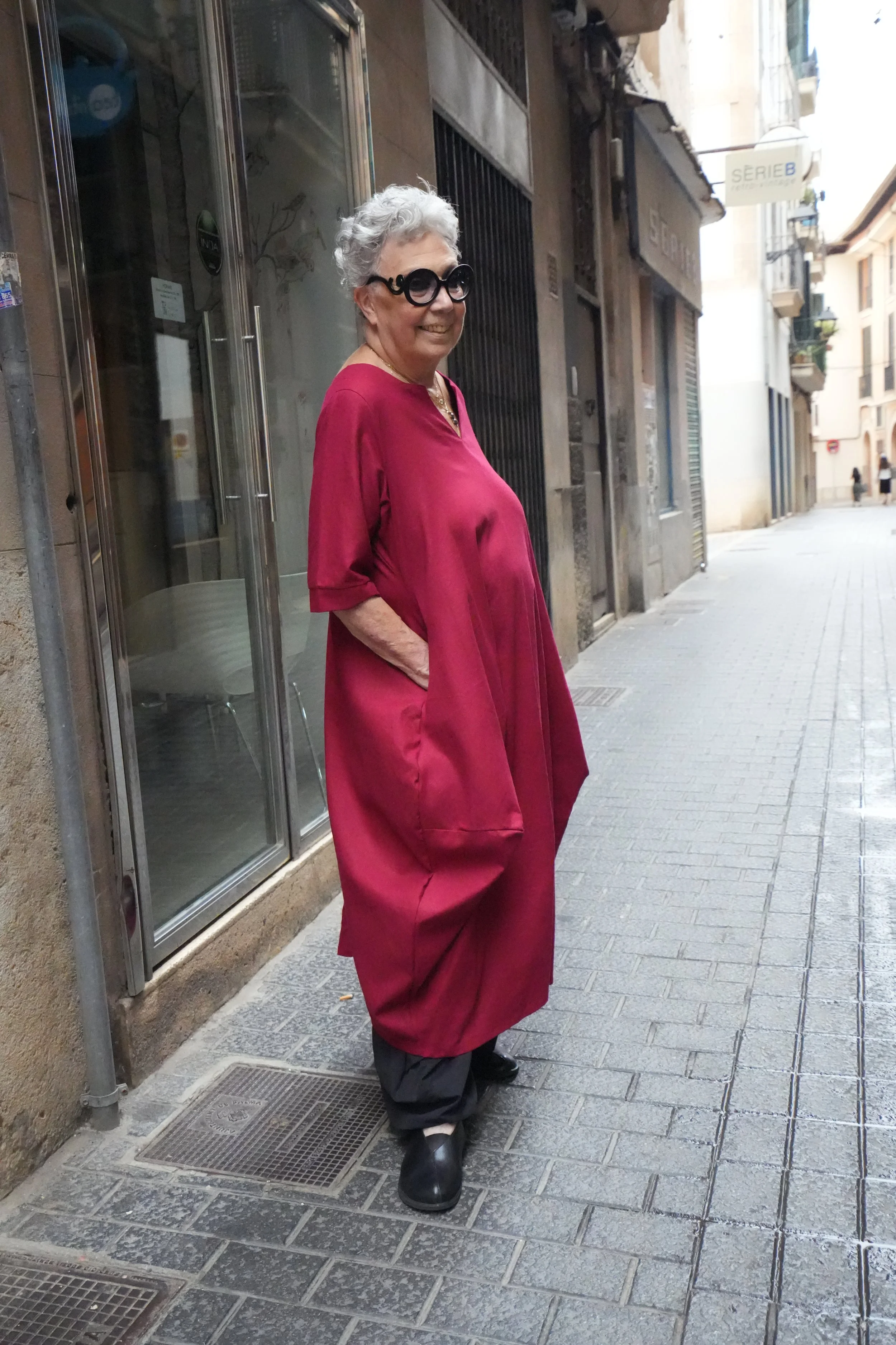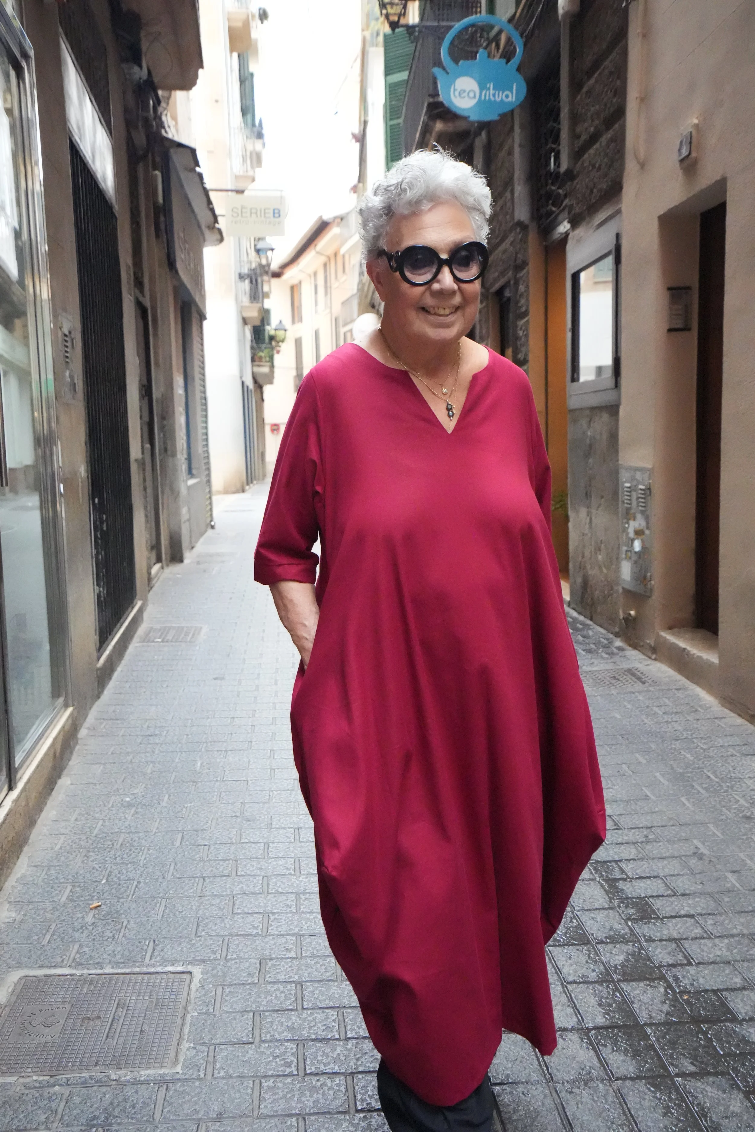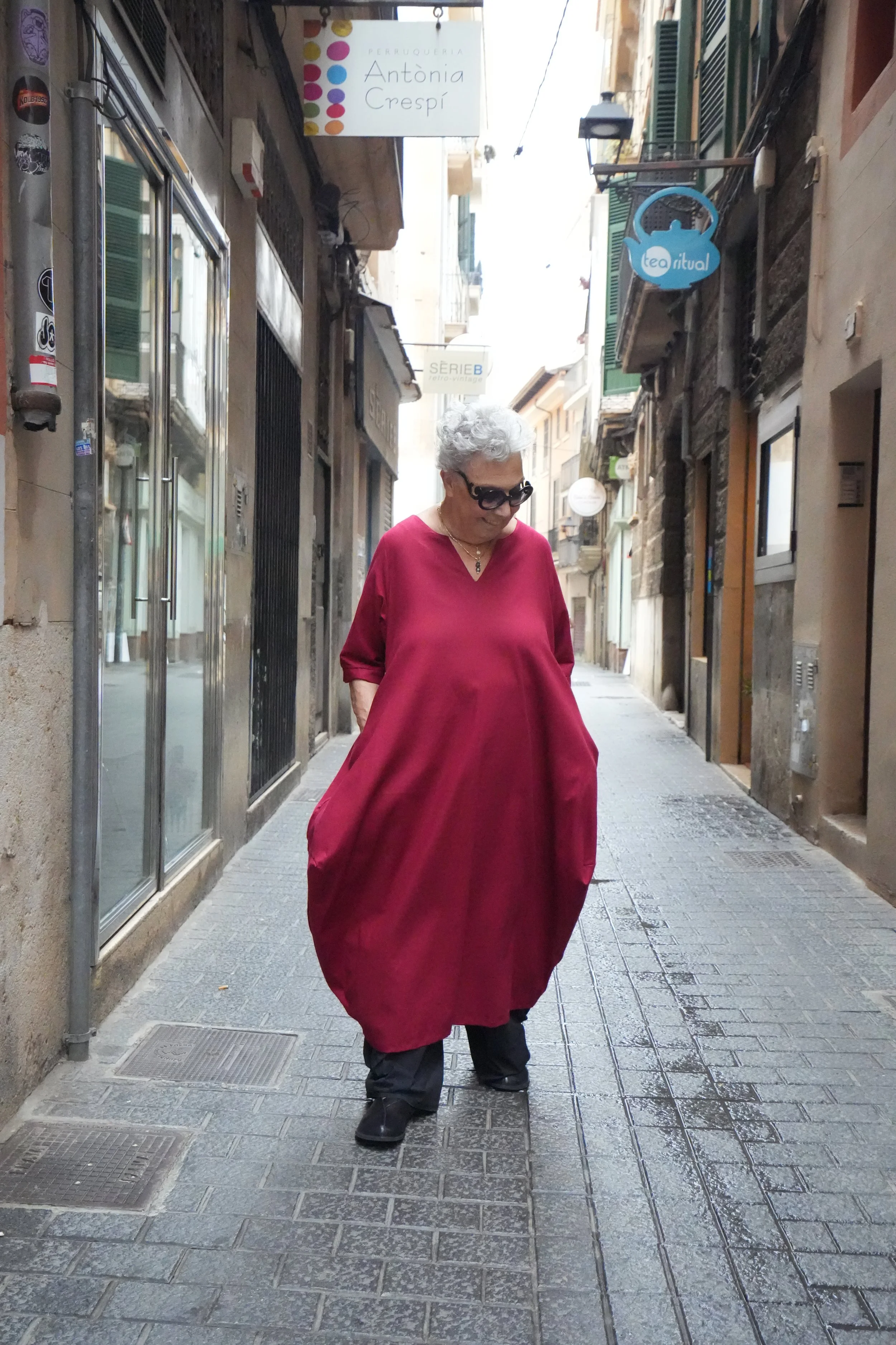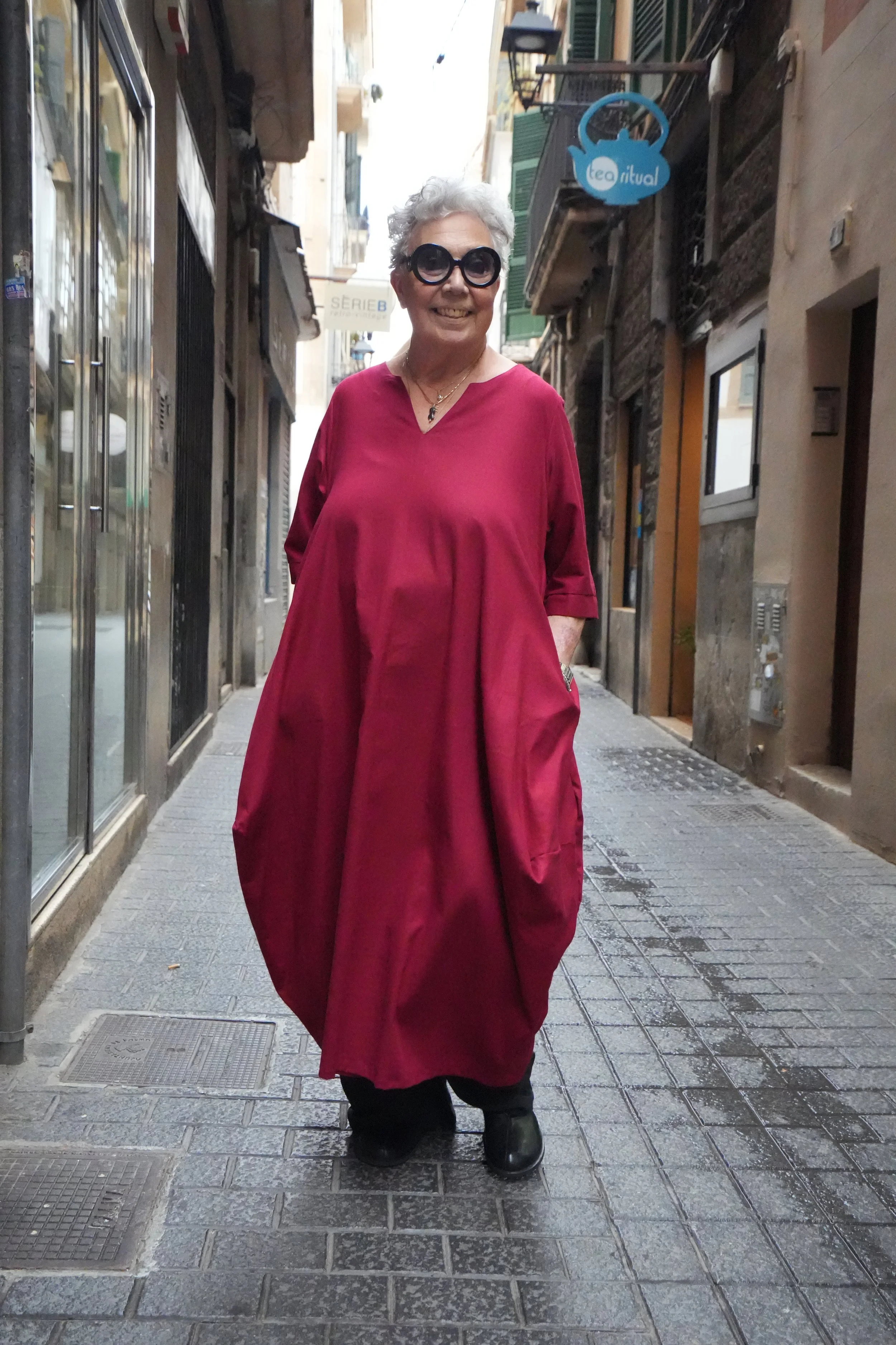 Vestido de estilo holgado y fluido, llena en lino y rojo pasión.