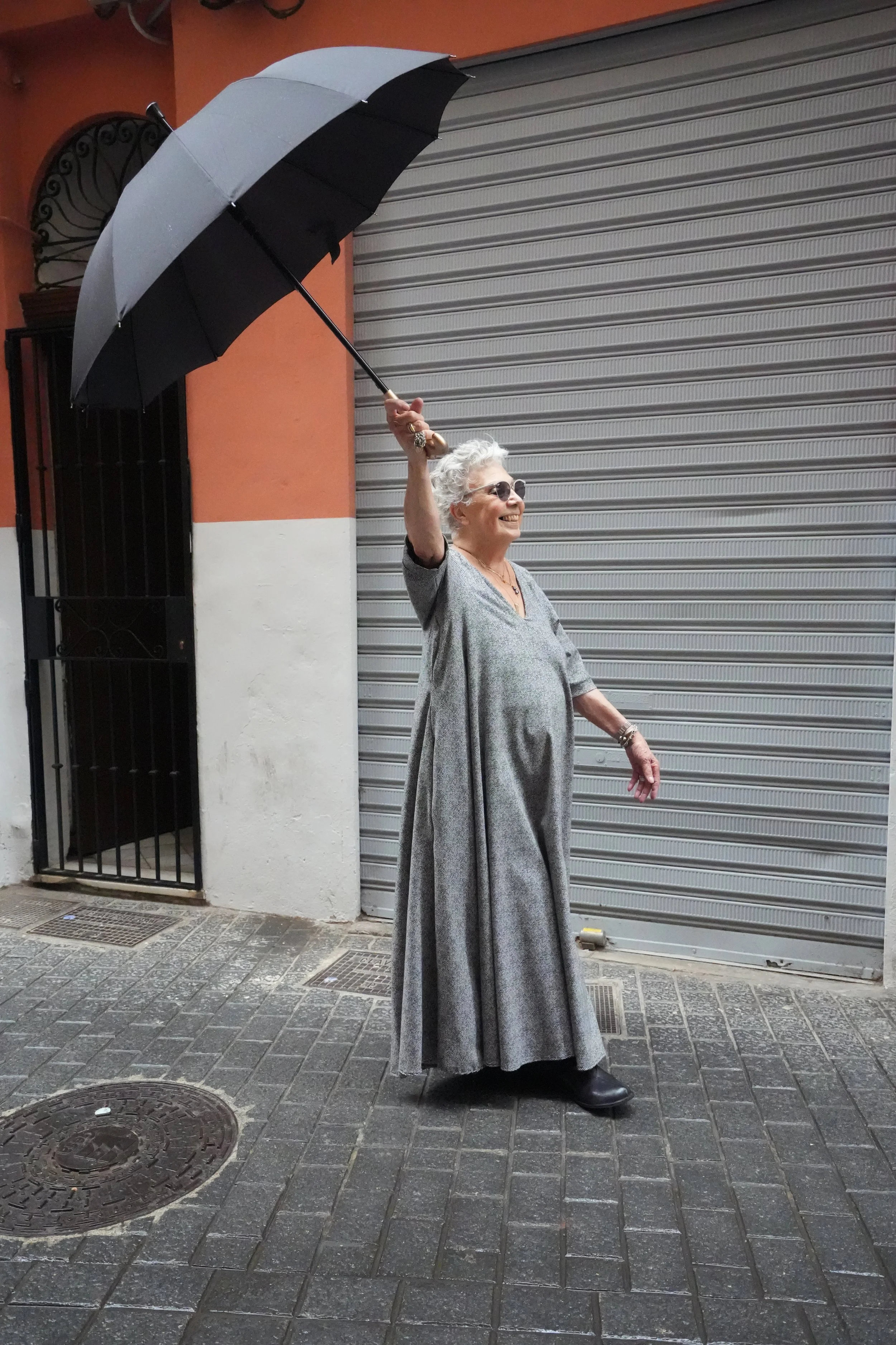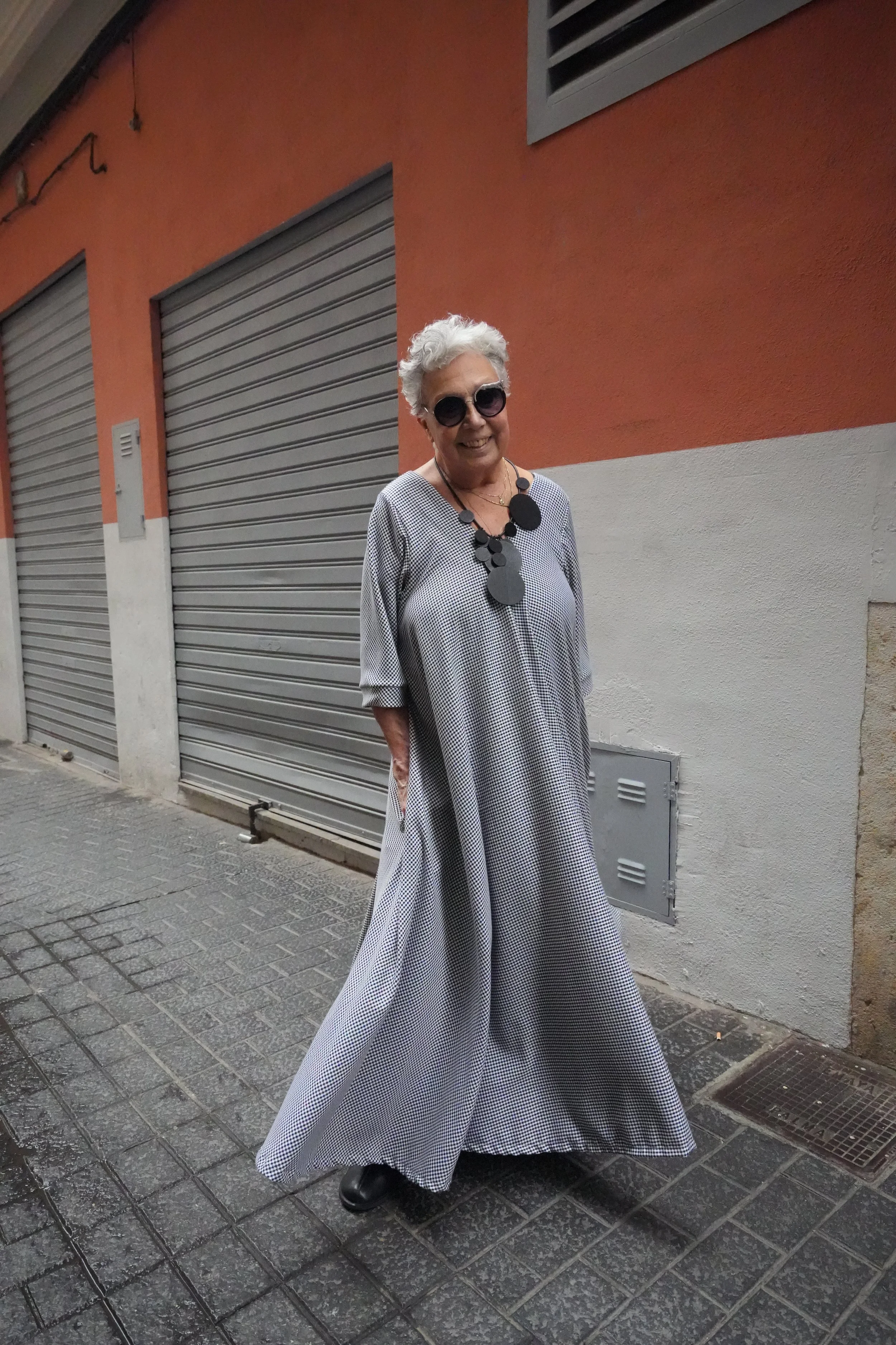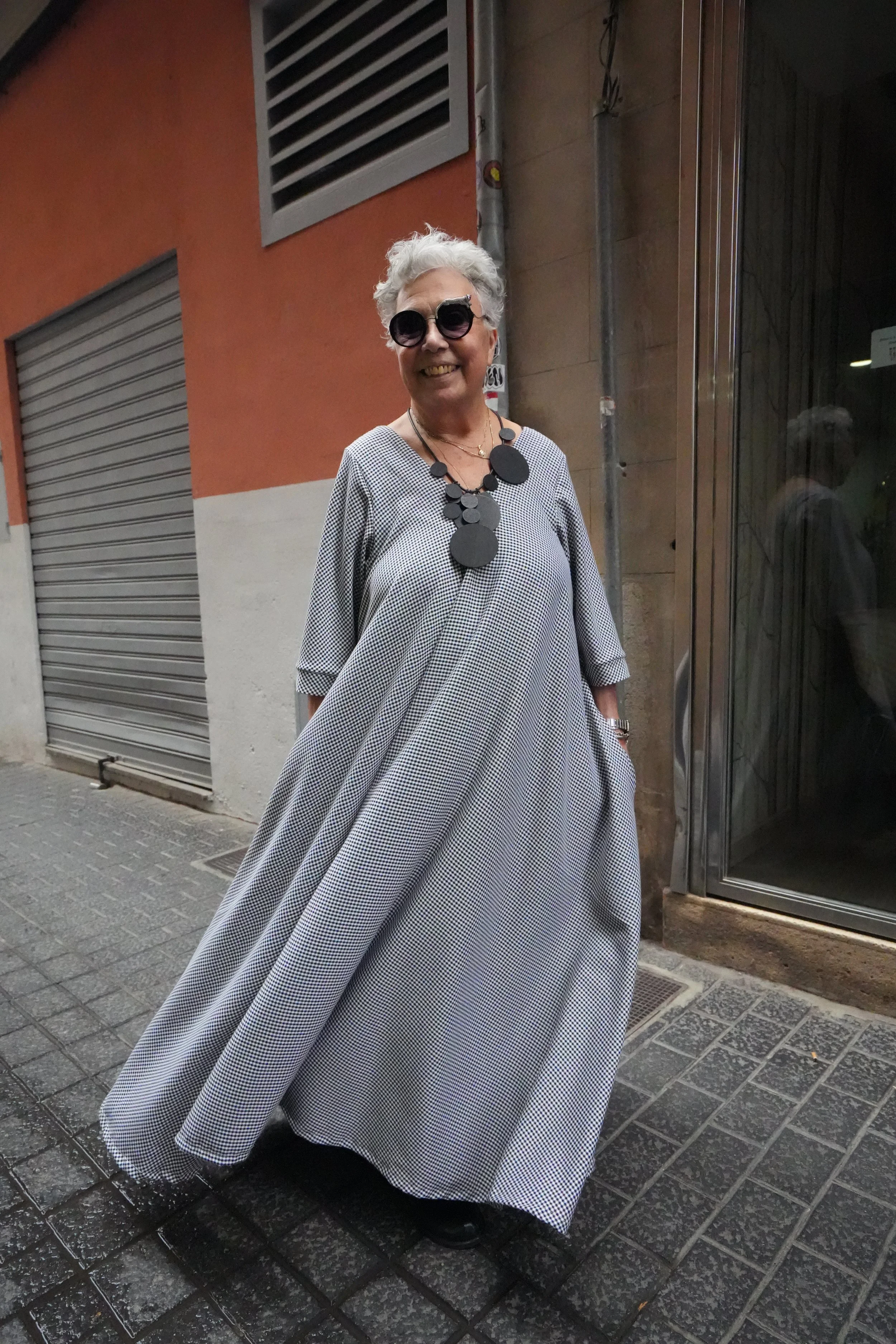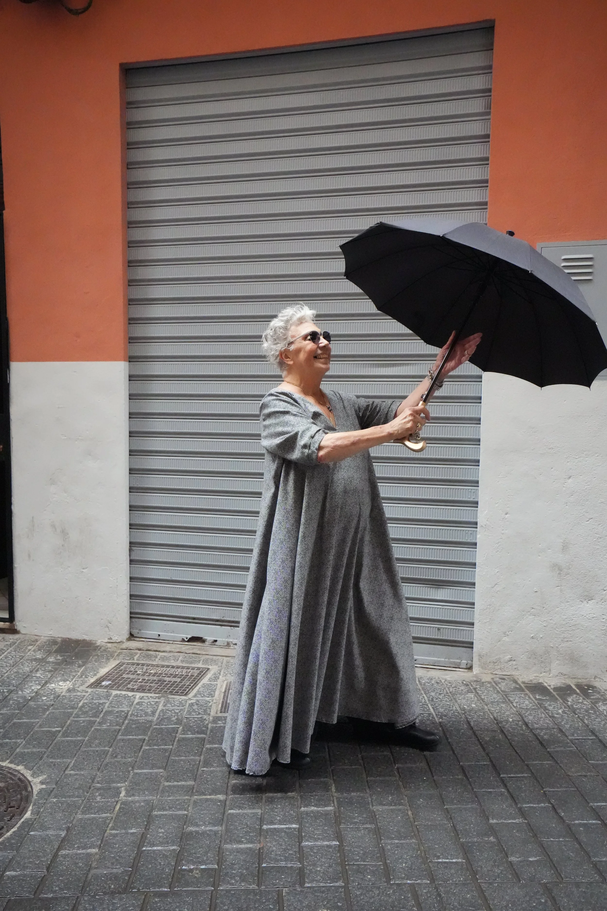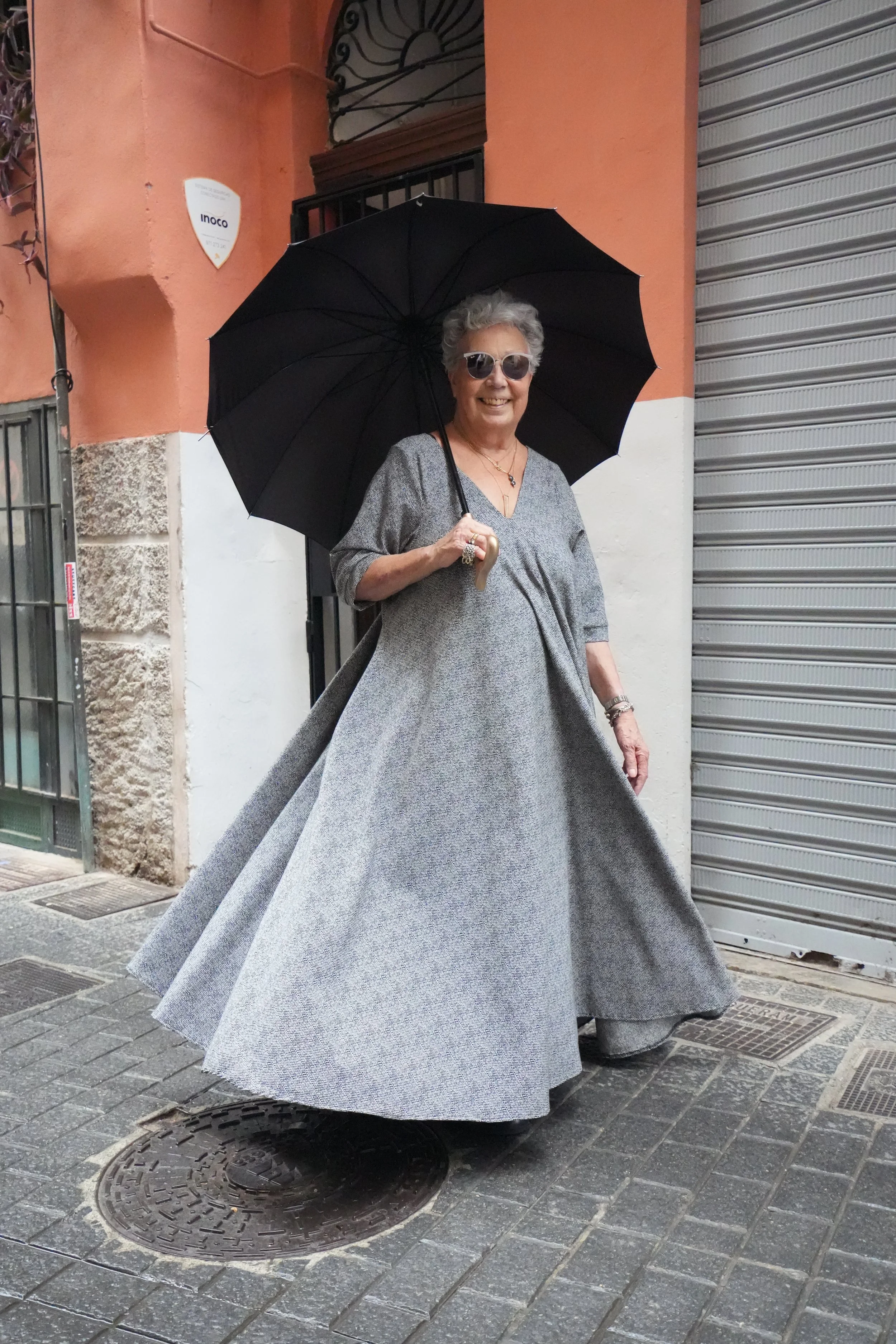 Vestido de estilo holgado y fluido, llena en lino y rojo pasión.